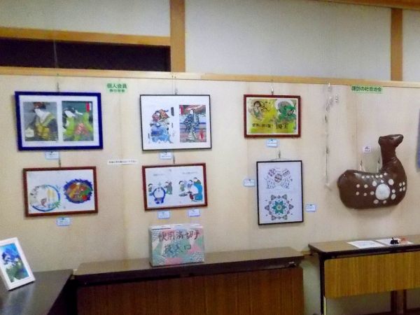 そして個人会員(4名)は、切手の貼り絵、絵画、書、折り紙細工を出展しました。