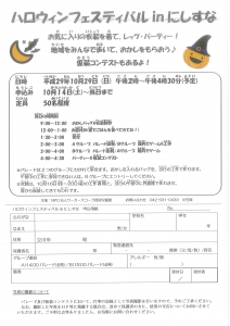 今月のビッグイベントは10月29日(日)に開催される「ハロウィン フェスティバル in にしすな」。