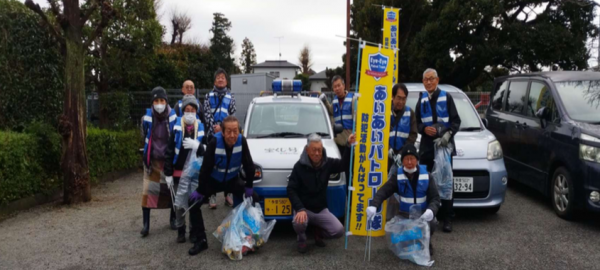 中里自治会では、あいあいパトロール隊活動の一環として、青パトを伴って地域全体を巡回。参加者は16名でした。