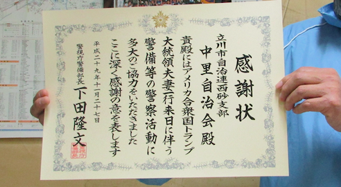 中里自治会は、警備期間中の警察官および関係者のための宿泊施設として中里公民館を貸し出すなど、警察活動に協力しました。