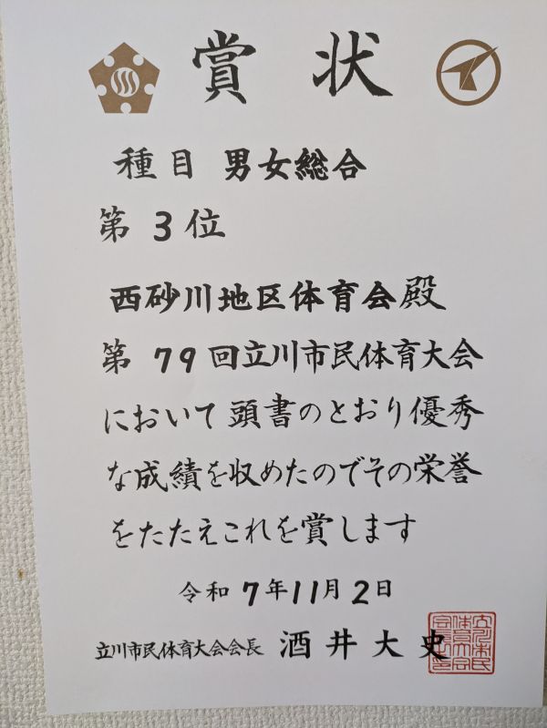 立川市の12地区体育会のうち10体育会が参加し、西砂川地区体育会からは38名の選手が参加。