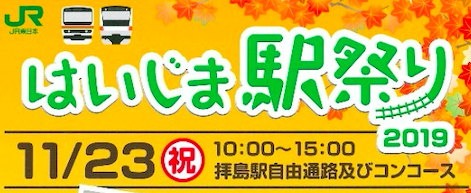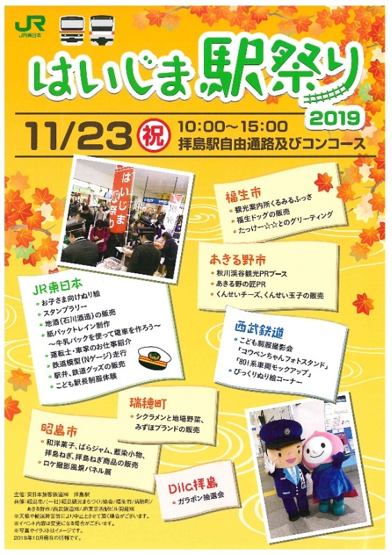 JR東日本では、拝島駅コンコースおよび自由通路で、「はいじま駅祭り2019」を11月23日(土・祝)10:00〜15:00に開催します。