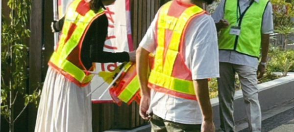 東団地自治会では、日頃から児童生徒の通学見守りなど、地域の防犯活動に積極的に取り組んでいます。