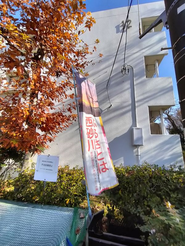 西砂川ニュース:エステート・あいあいPのぼり旗を掲出し週3回のパトロール活動実施