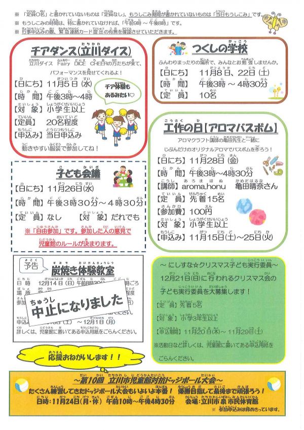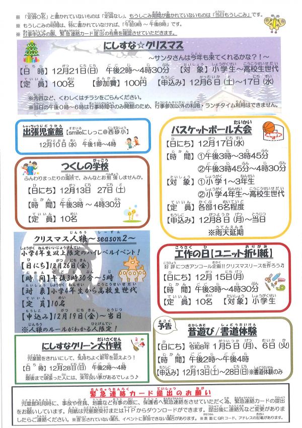 西砂川ニュース:西砂児童館「にしすな☆クリスマス」はじめ12月もイベント充実