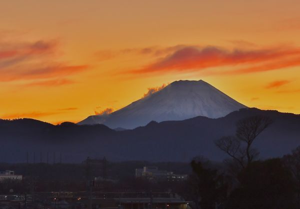 撮影は2015年12月。富士山のシルエットを背にして、一機の輸送機がゆるやかに帰還する。その姿は、日々の暮らしの中で感じる「安堵」と「哀愁」の象徴かも知れません。近頃は戸建てが増え、富士山が望めなくなったという。