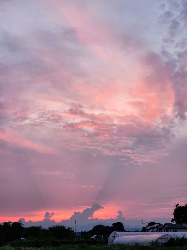 地平線近くの雲は、自然が描いた温かな物語の一場面のよう。沈む夕陽の光が放射状に広がり、命の輝きと夕暮れの静かさが見事に調和しています。西砂の空の下、たくさんの家族の幸せが伝わってくるような、優しさ溢れる作品です。