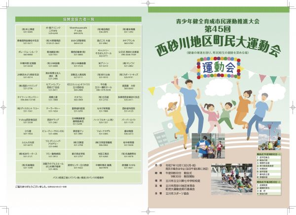「第45回西砂川地区町民大運動会」が、令和7年10月13日(月・祝)に立川第七中学校校庭で開催されます。