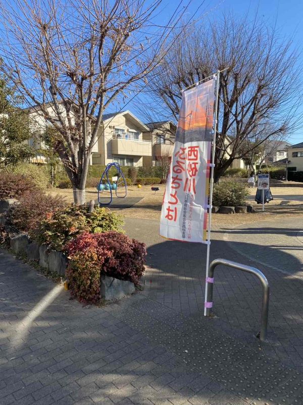 AYUMO CITY 立川自治会では、令和8年2月1日(月)に自治会内みずたま公園にあいあいパトロール隊ののぼり旗を掲出。地域の防犯態勢をアピールしました。
